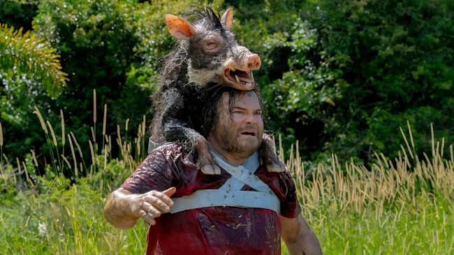Ver a Jack Black corriendo con un jabalí atado a la chepa endulza un poco su pobre sentido del humor