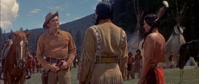 El autor que tildaba de farmacéutico a todo director que en lugar de dirigir se limitaba a “colocar” allí el guion –maravillosa forma de criticar algo que sucede aún más a día de hoy, sobre todo en el cine mainstream−, se asoció con la estrella Kirk Douglas, aquí protagonista absoluto para su lucimiento, y también productor. El resultado es uno de esos westerns tan de moda en los cincuenta, con claro mensaje anti-racista, y una historia mil veces vista de diversa forma, la última de ellas en la laureada, y excelente, ‘Avatar’ (id, James Cameron, 2009).