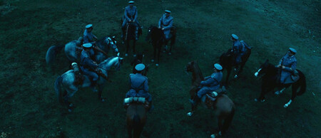 Pero el dorado y el azul no lo explican todo. Las apariciones del Fauno y las escenas nocturnas en el laberinto se tiñen también de verdes terrosos que conectan la magia con lo orgánico, con la tierra y el musgo de las ruinas. Pero ese verde también roza el azul, el color del mundo adulto. El Fauno resulta inquietante, ambiguo, casi siniestro, lo suficiente como para sembrar la duda de si está guiando o manipulando a Ofelia. Y la paleta sugiere que la fantasía no es necesariamente más segura que la realidad.