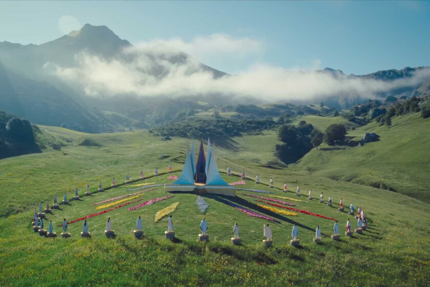 ¿La solución para devolver el color? A la vez práctica y tecnológica. El interior del círculo en el que comienzan los juegos se rellenó con césped artificial para compensar el real, mientras que fuera del círculo tocó aplicar CGI por un tubo, en planos como el que puede verse desde el mismo tráiler. Es un caso del equipo de efectos especiales salvando los muebles por culpa de una mala planificación de producción. Al menos la geografía de Somiedo es igualmente imponente, y el resultado es mejor que si se hubiese rodado por completo en estudio.