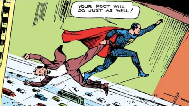 Imagina: en 1938, la idea de que un superhéroe volara por las buenas era algo absolutamente ridículo. Al fin y al cabo, solo hacía diez años que se había realizado el primer vuelo oceánico con pasajeros, y seguía siendo una excentricidad para ricos. Nadie concebía el vuelo como algo normal de su día a día: Superman, en su lugar, daba saltos muy potentes, suficiente para subir a ventanas o pasar muros por lo alto, pero sin que nadie pudiera confundirle con un pájaro o un avión. Al menos, durante unos años.